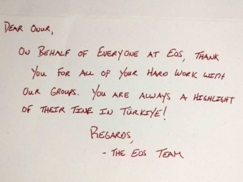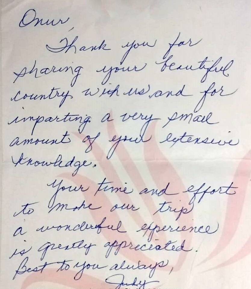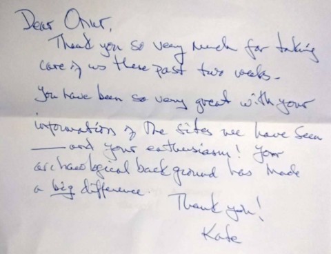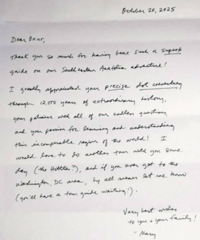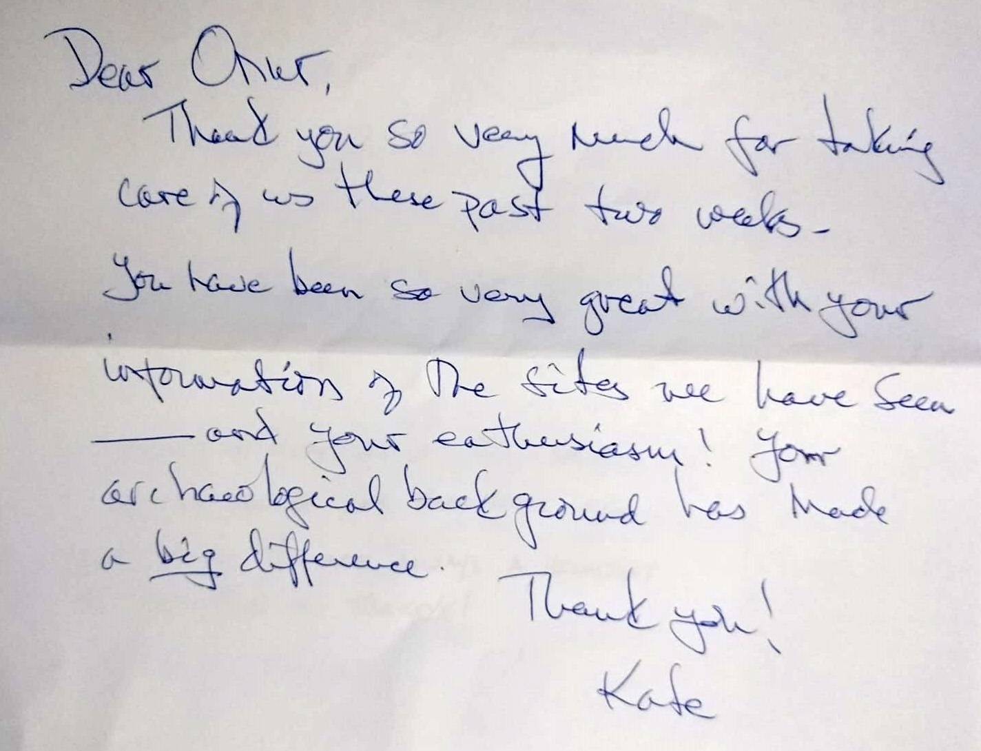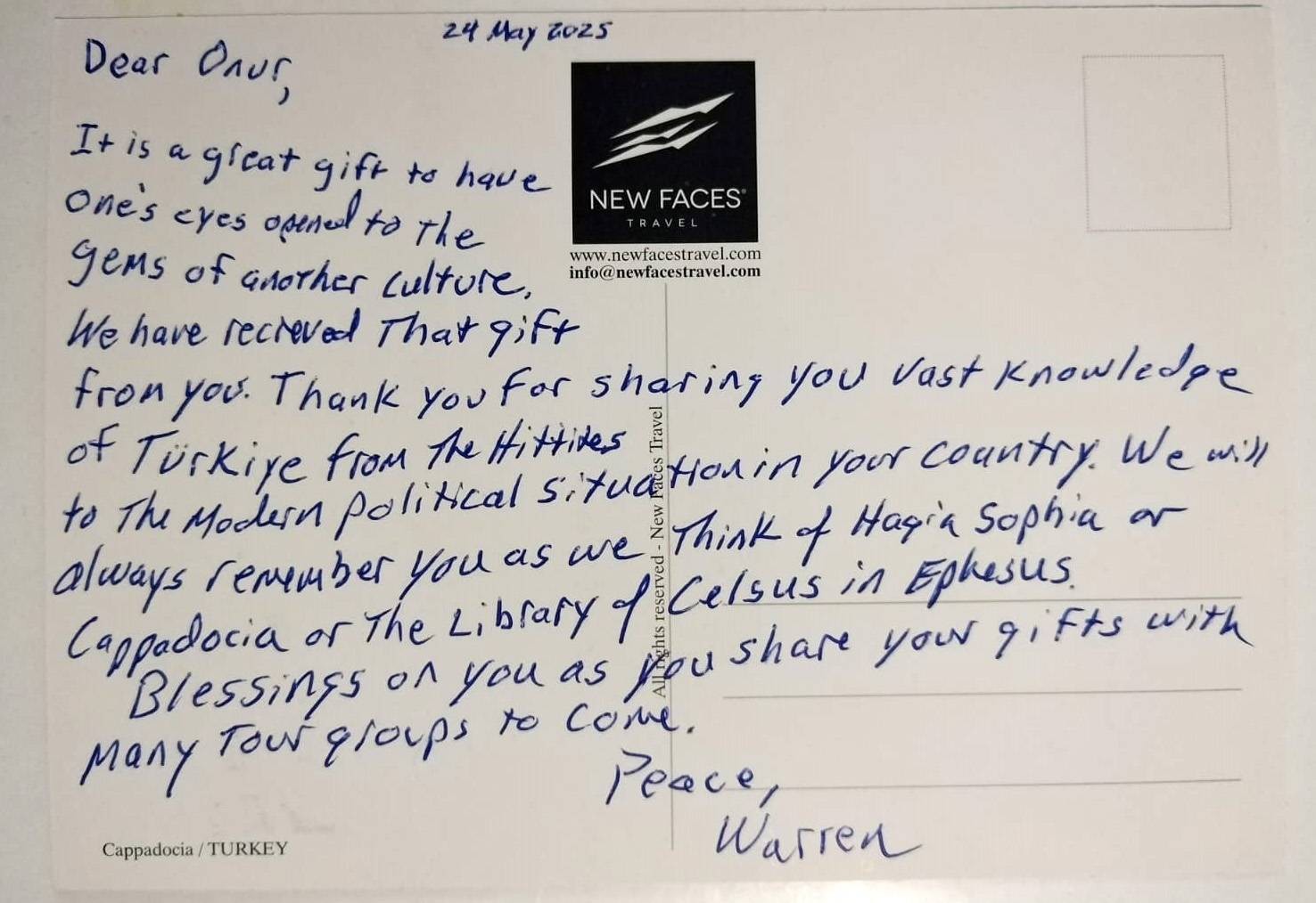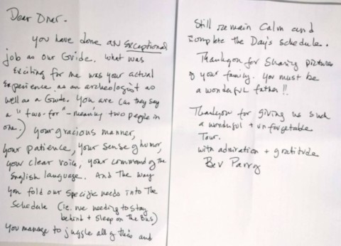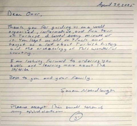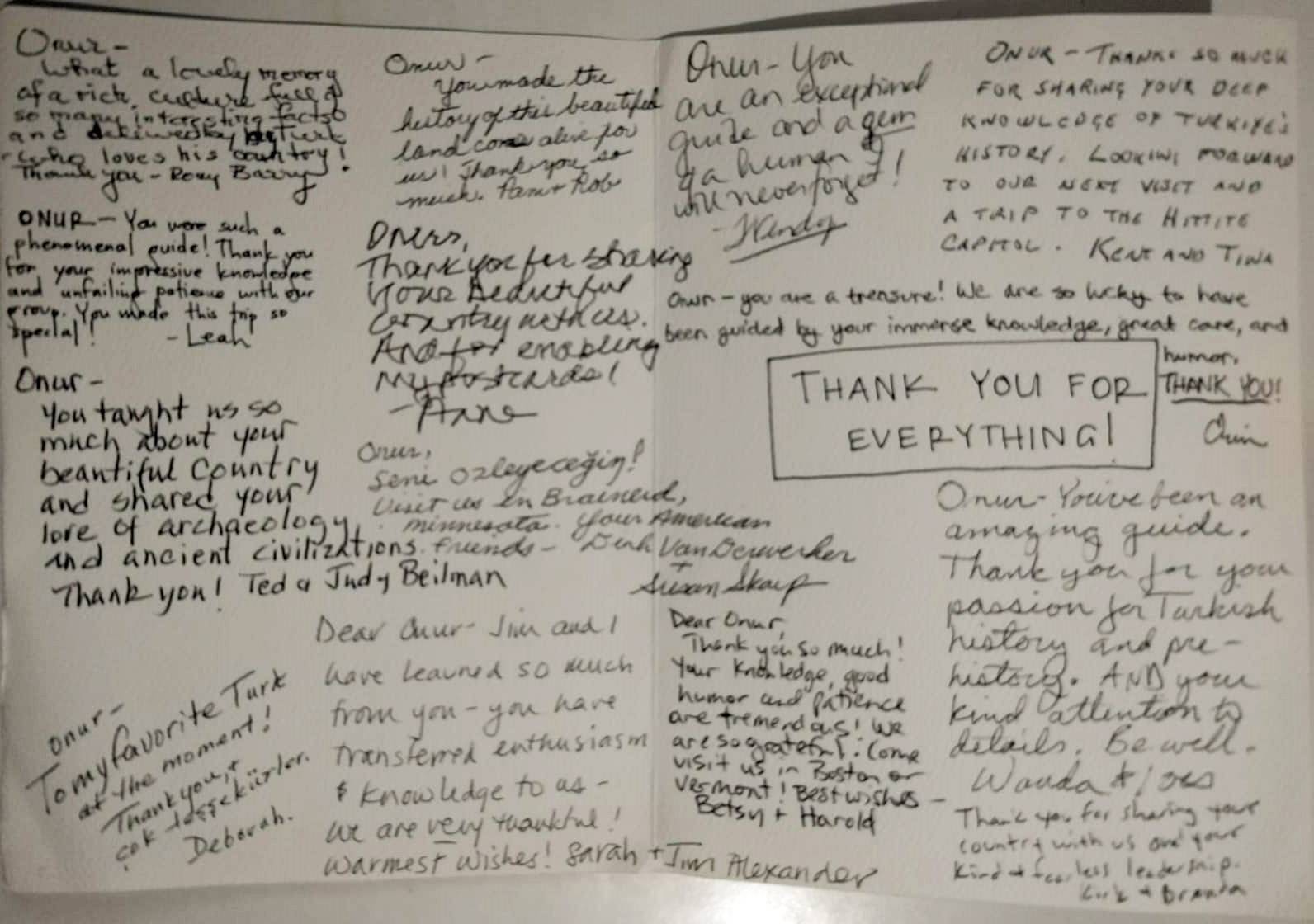 These are some of the letters and notes that were given to me by my guests at the end of various tours I guided in different parts of Turkey over the past couple of years. I truly appreciate their feelings and their encouraging thoughts about me and our tours.
